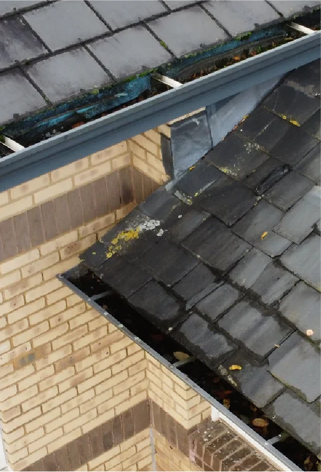 Protecting adjoining walls by cutting a flashing into an adjoining building